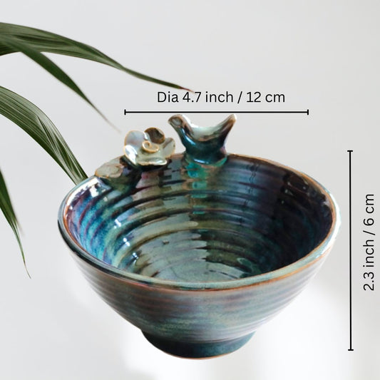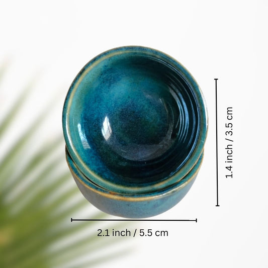Pine Blue Handmade Wheel Thrown Pottery Glazed Bowl | Set of 1