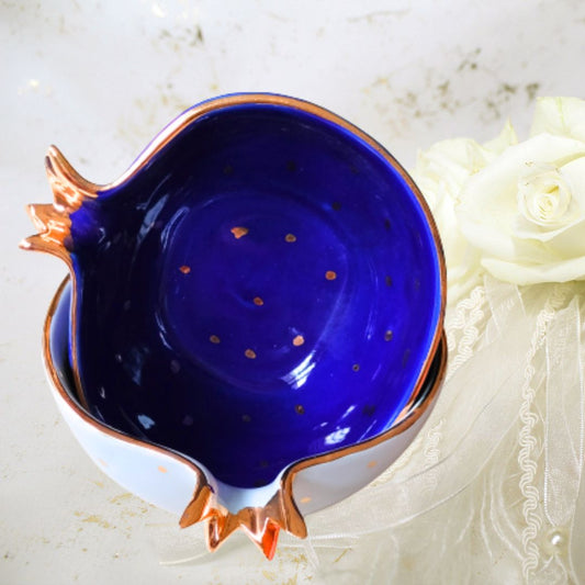 Azure Blue & Modest Grey Pomegranate Halves Bowl | Set of 2 | Perfect Gift | Gold Plated