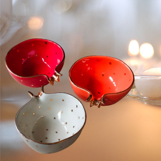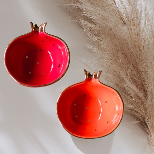 Red Pomegranate Halves Bowl | Perfect Gift | Gold Plated
