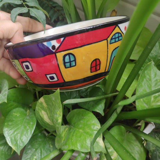 Hut Scenery Ceramic Hand Painted Portion Bowl, Set of 2