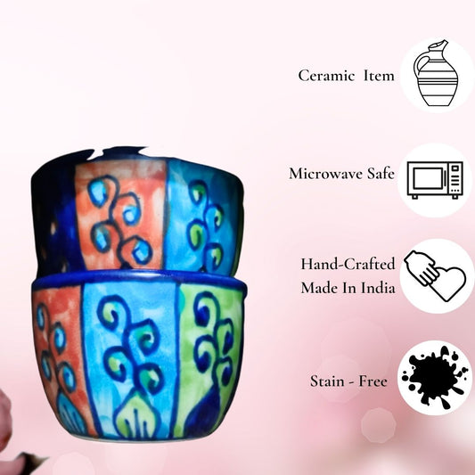 Hand-Painted Multi-Color Design Dessert / Portion Bowl | Set of 2