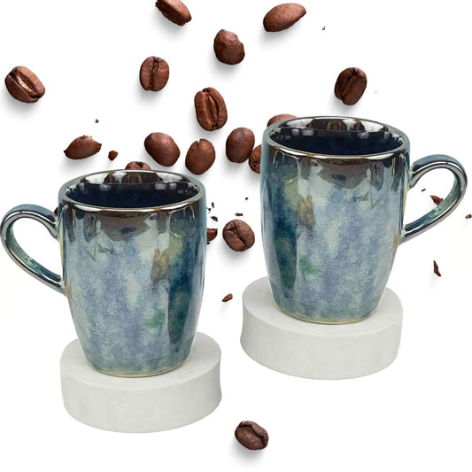 Glazed Black Blue Handcrafted Mug | Set of 2
