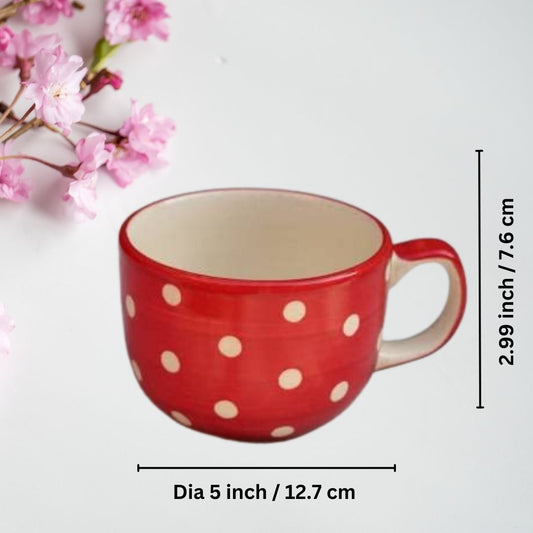 Hand Painted Red Heart Ceramic Soup Bowl Mugs | Set of 2 | 315 ml