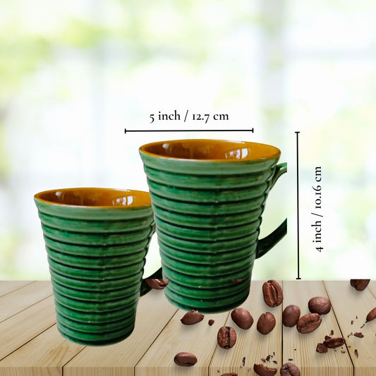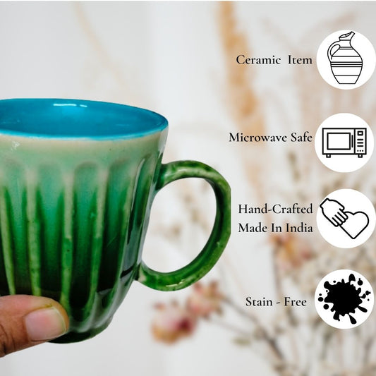 Glazed Blue & Green Leafy Handcrafted Mug (Set of 2)