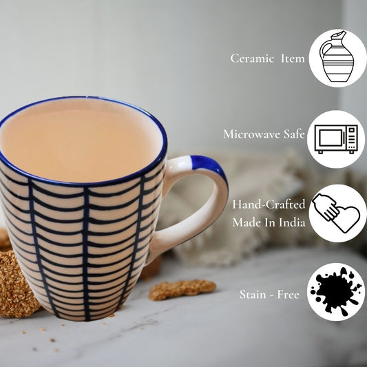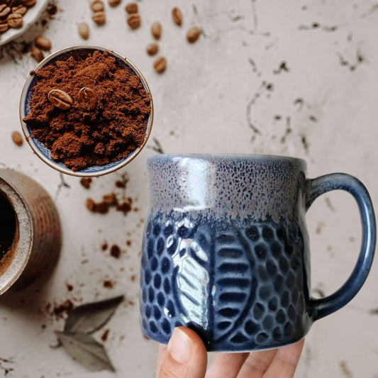 Ink Blue Grey Leafy Handcrafted Mug (Set of 2)