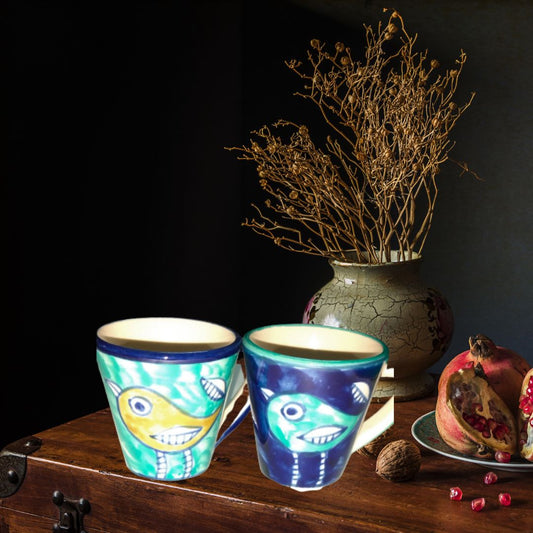 Hand-Painted Bird Painting Small Mugs (set of 2)