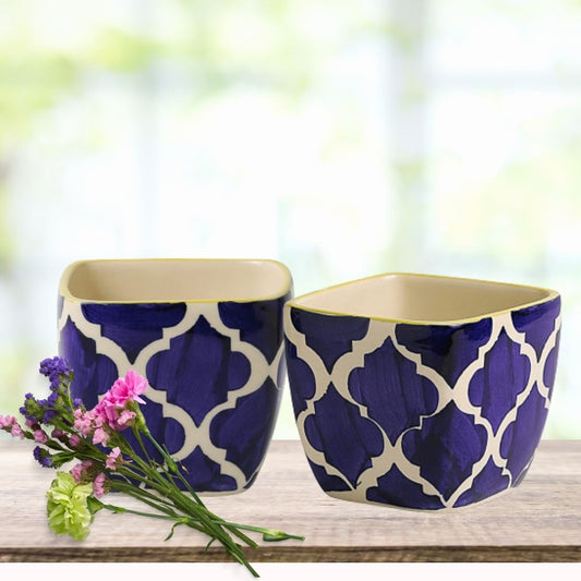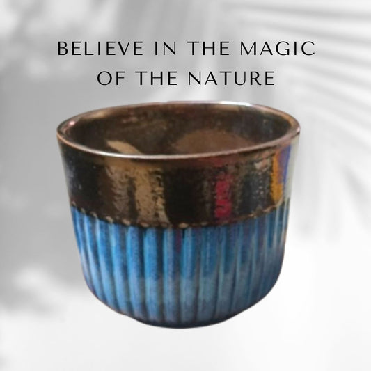 Golden Glazed Deep Blue Ceramic Pot | Planter | 4.5H X 5.5D