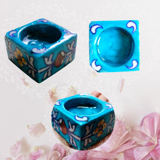 Blue Pottery Turquoise T-Light Candle Holder- Set Of 2