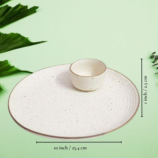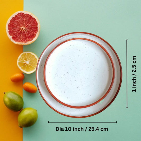 White Earthy Dinner Plate Hand-Painted with Golden Brown Lining |10 inch