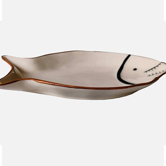 Studio Pottery Handcrafted Ceramic Fish-Shaped Glossy Serving Platter