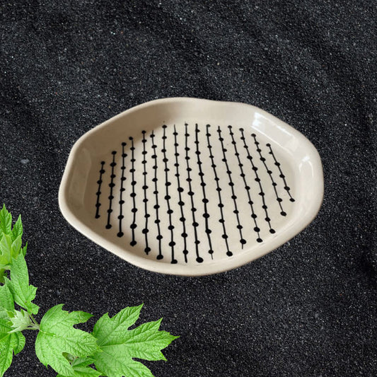 Knotted Black Stripe- Painted Ceramic Dessert | Snack Plate