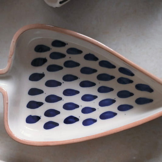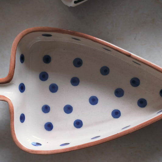 Ceramic Hand-Painted Leaf Shape Blue Polka Dot Dessert | Snack Plate