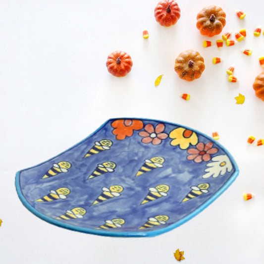 Honey Bee Design Hand-Painted Serving Plate for Dinner or Snacks (Set of 2)
