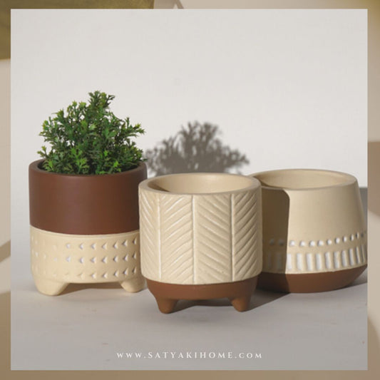 Beige & Brown Terracotta Pot | Indoor Planter | Set of 1