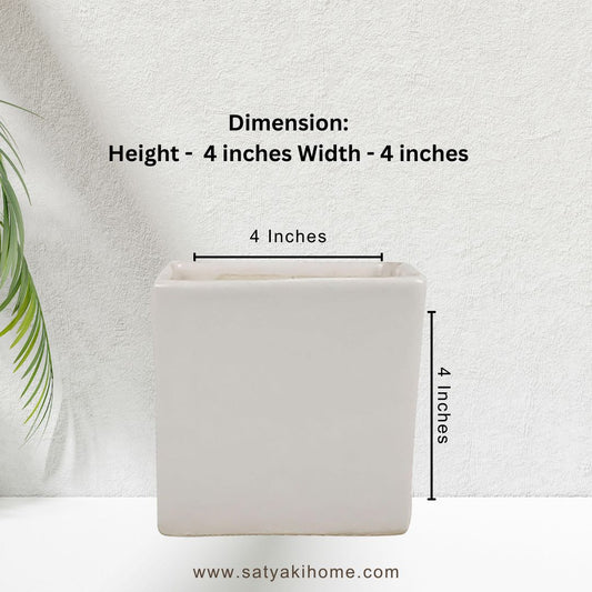 Satyaki Square Shaped White Ceramic Pot | Planter | 4H X 4W