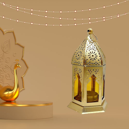 Radiant Moroccan Gold & Yellow Lantern Tea Light Holder | Set of 2