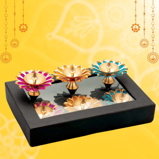 Brass Metal Colorful Lotus Diya | Set of 6 | Gift Pack