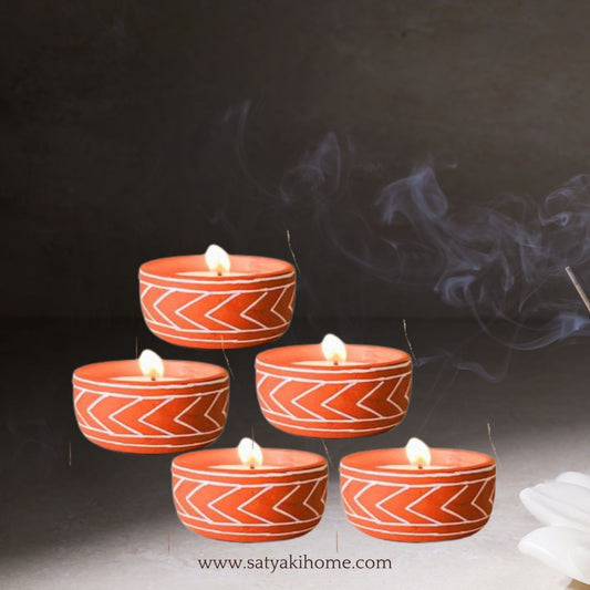 Terracotta Handpainted Tribal Arrow Design Candles |Set Of 4