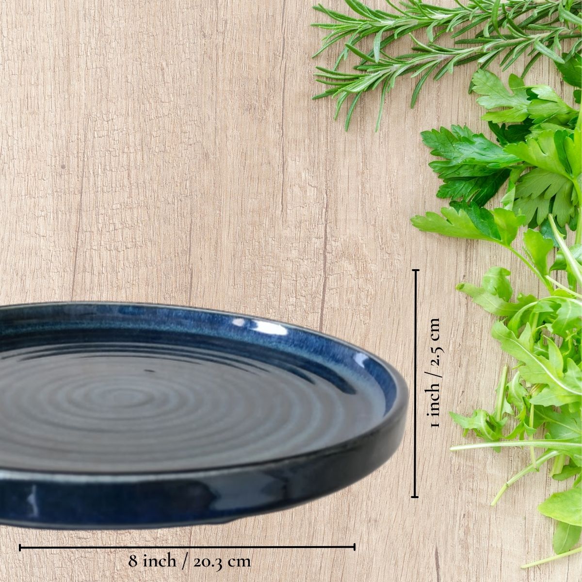 The Satyaki Dinner Plate ensures that you will set the table with style and grace whether you are hosting a dinner party for friends and family on the weekend or simply serving your regular meals. It is made of pottery, and the surface is glazed. It has a beautiful deep blue tone. Craft -Studio Pottery